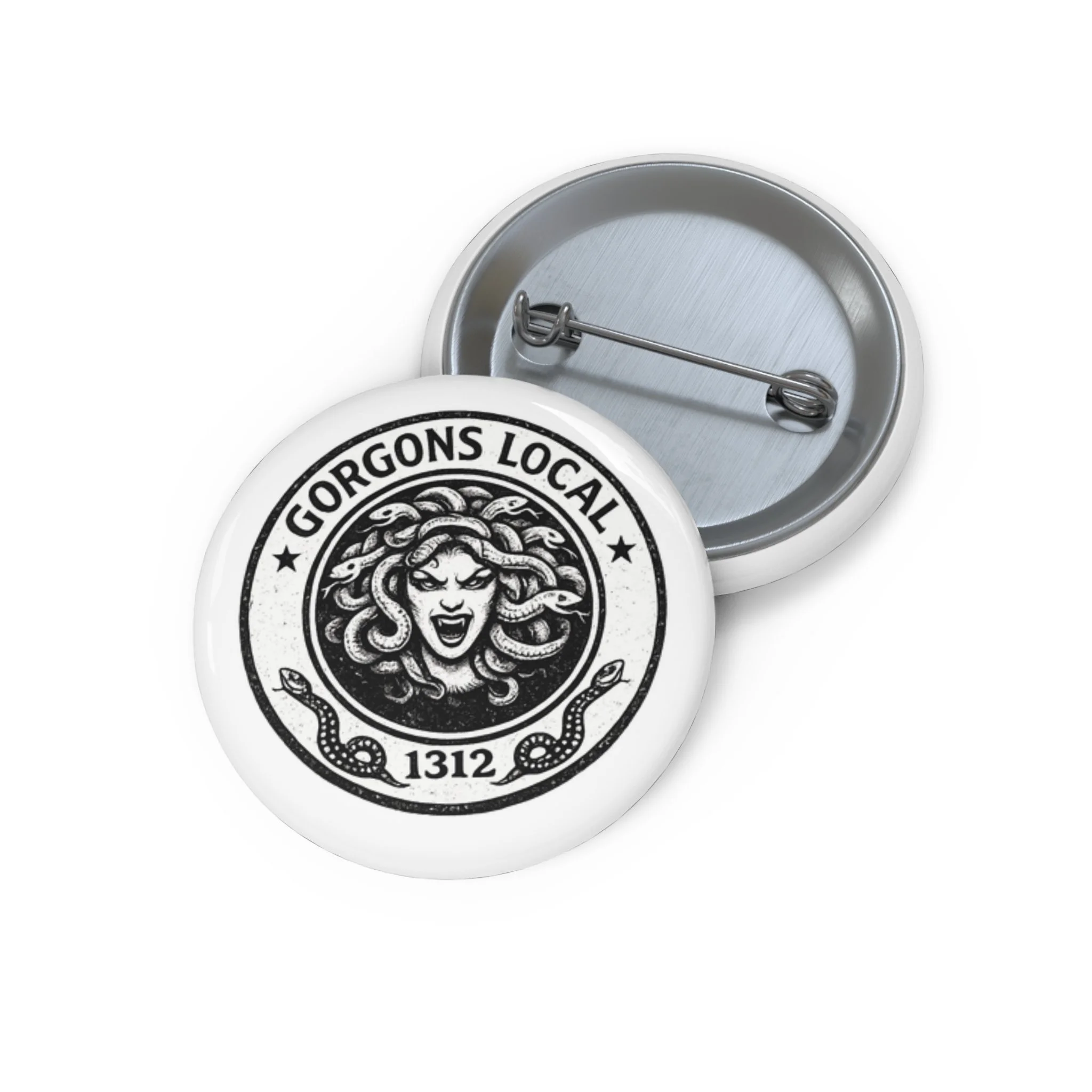 Gorgon Pin Button — 'Gorgon's Local 1312' Mythical Medusa Badge