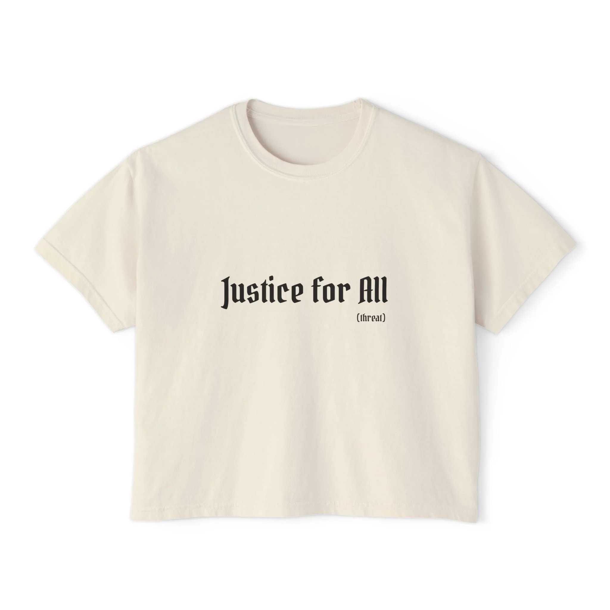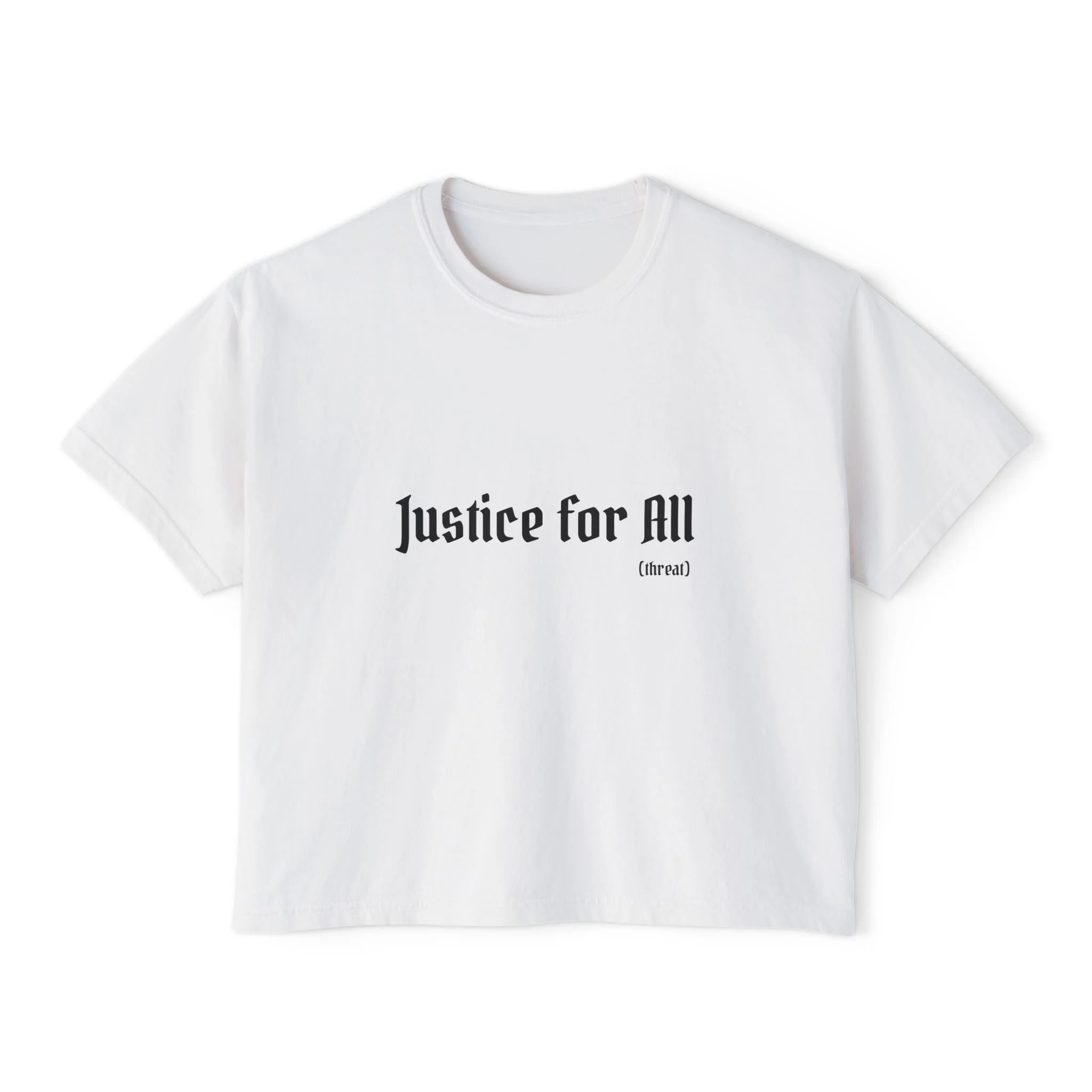 Justice for All Boxy Tee — Women’s Graphic Cropped T-Shirt
